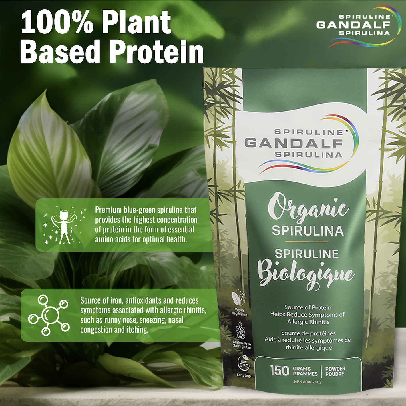 Gandalf organic spirulina™ is one of the most nutrient-rich superfoods on the planet. Plant-based in origin, spirulina possesses the superpowers of algae and is a natural source of: